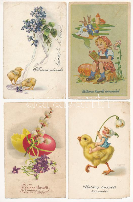 20 db RÉGI húsvéti üdvözlő motívum képeslap vegyes minőségben / 20 pre-1945 Easter greeting motive postcards in mixed quality