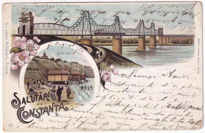 1904 Constanta, Podul Carol I. pe Dunare, Baile da le Vie. G.M. Grigor...