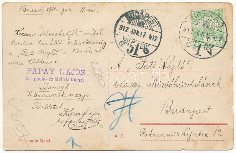 1912 Poiana Sarata, Sósmező (Bacau); Vama Oituz / customs office (EB)