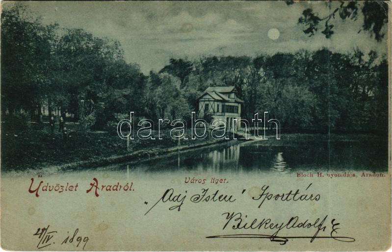 1899 (Vorläufer) Arad, Városliget. Bloch H. kiadása / park (kopott sar...