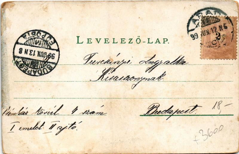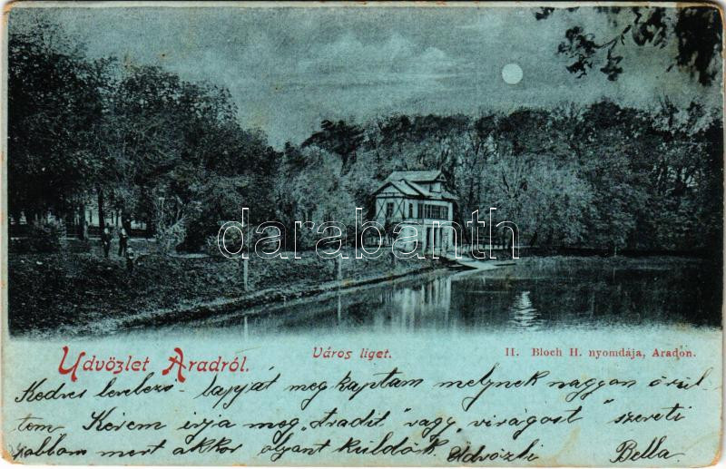 1899 (Vorläufer) Arad, Városliget este. Bloch H. kiadása / park at night (kopott sarkak / worn corners)
