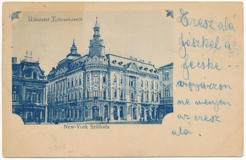 1900 Kolozsvár, Cluj; New York szálloda, Csiky Mihály üzlete / hotel, shop (fa)