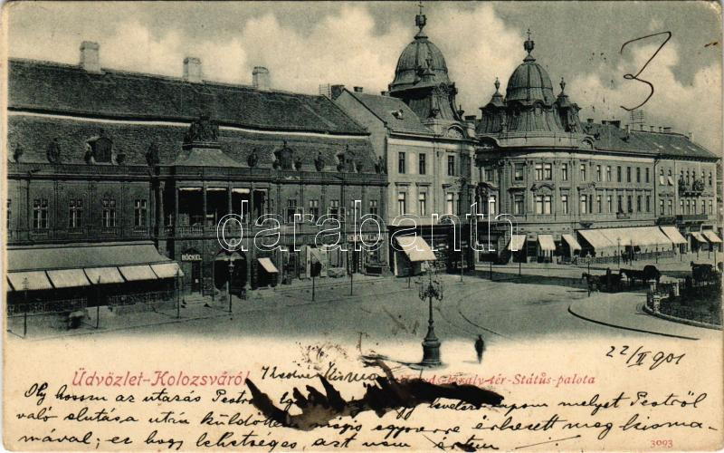 1901 Kolozsvár, Cluj; Mátyás király tér, Státus palota, Böckel, Remény...