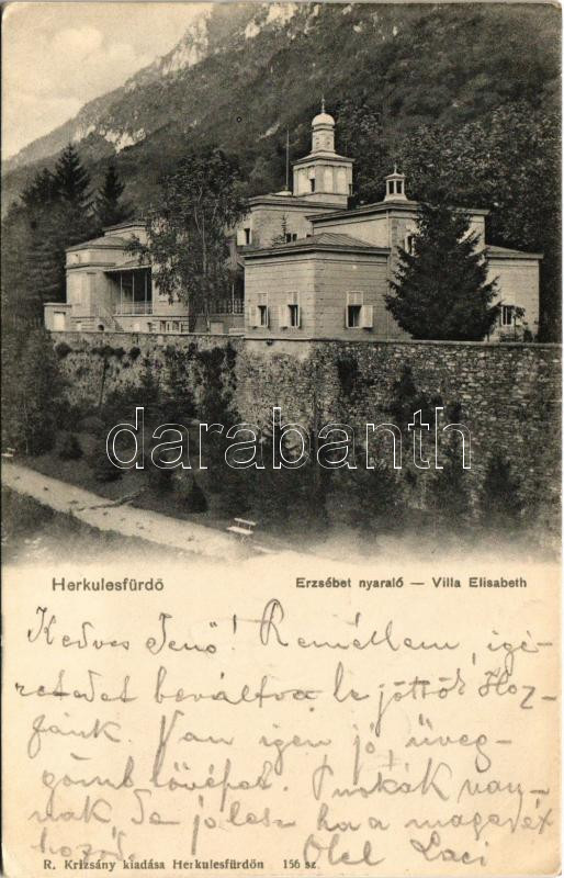 1904 Herkulesfürdő, Baile Herculane; Erzsébet nyaraló. R. Krizsány kia...