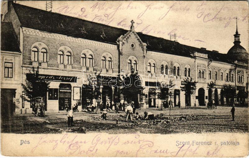 1905 Dés, Dej; Szent Ferenc-rendiek palotája, Gálócsi Samu üzlete és s...