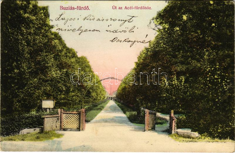 1907 Buziásfürdő, Baile Buzias; út az acélfürdőhöz. Francz Testvérek k...