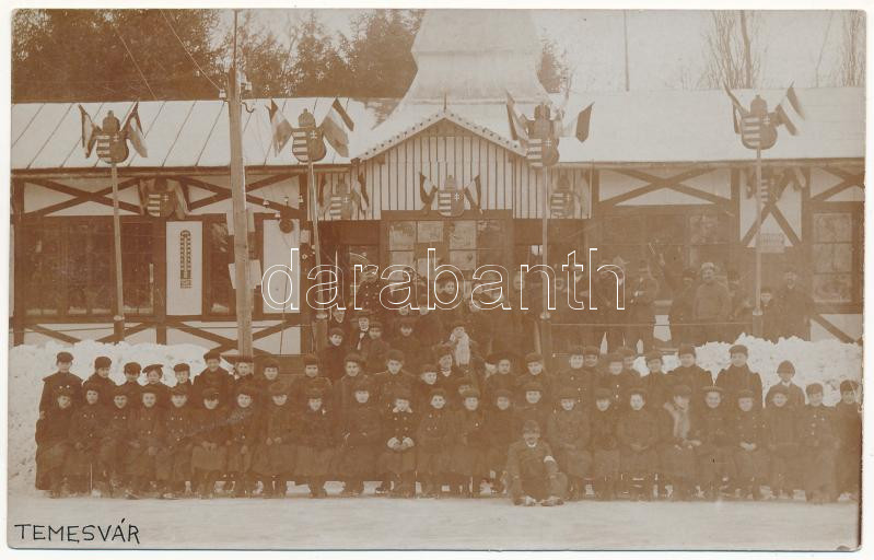1907 Temesvár, Timisoara; Jégpálya magyar címerekkel és zászlókkal, a ... https://www.darabanth.com/en/436-Online-auction/436.0/Postcards/Transylvania~2000005/1907-Temesvar-Timisoara-Jegpalya-magyar-cimerekkel-es-zaszlokkal-a-felsobb-leany-iskola-~II2826303