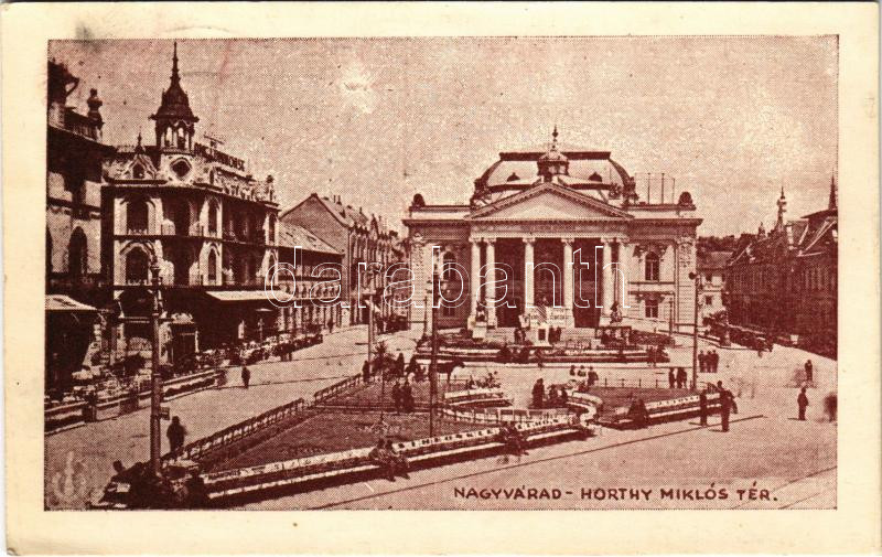1940 Nagyvárad, Oradea; Horthy Miklós tér, színház / square, theatre +...