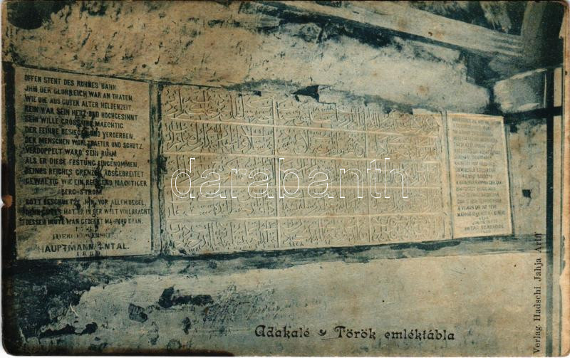 https://www.darabanth.com/en/436-Online-auction/436.0/Postcards/Transylvania~2000005/Ada-Kaleh-Adakale-Torom-emlektabla-Hadschi-Jahja-Ariff-kiadasa-Turkish-monument-fl~II2824987