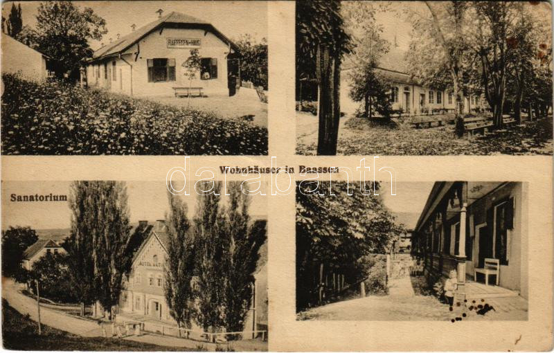 Bázna, Felsőbajom, Bad Baassen, Baiumul de Sus; Wohnhäuser, Sanatorium, Raiffeisen-Haus / szanatórium, lakóházak, Raiffeisen ház, szálloda / sanatorium, hotel, houses (fa)