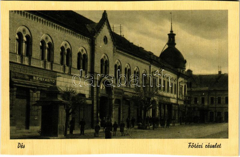 Dés, Dej; Fő tér, Szigyártó üzlete / main square, shops (vágott / cut)