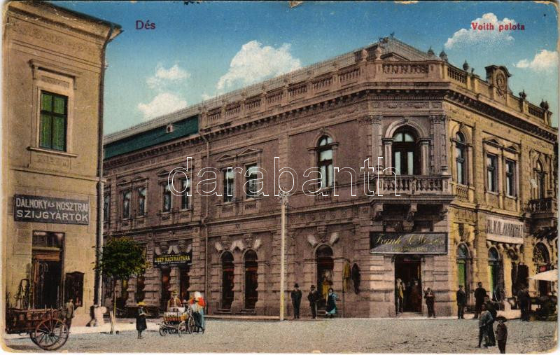 Dés, Dej; Voith palota, Dálnoky és Nosztrai szíjgyártók, liszt nagyrak... https://www.darabanth.com/en/436-Online-auction/436.0/Postcards/Transylvania~2000005/Des-Dej-Voith-palota-Dalnoky-es-Nosztrai-szijgyartok-liszt-nagyraktar-Frank-I-Mozes-e~II2826492