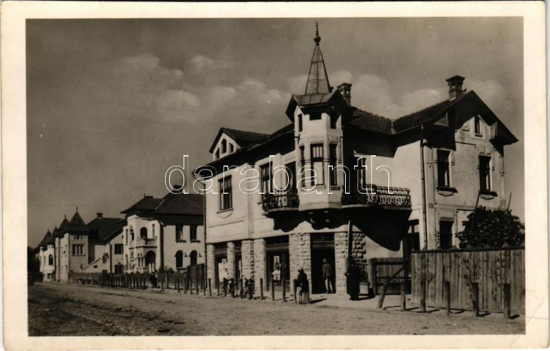 Dés, Dej; villanegyed, üzlet, kerékpárok. Nagy Péter kiadása / villas, shop, street view, bicycles (EK)