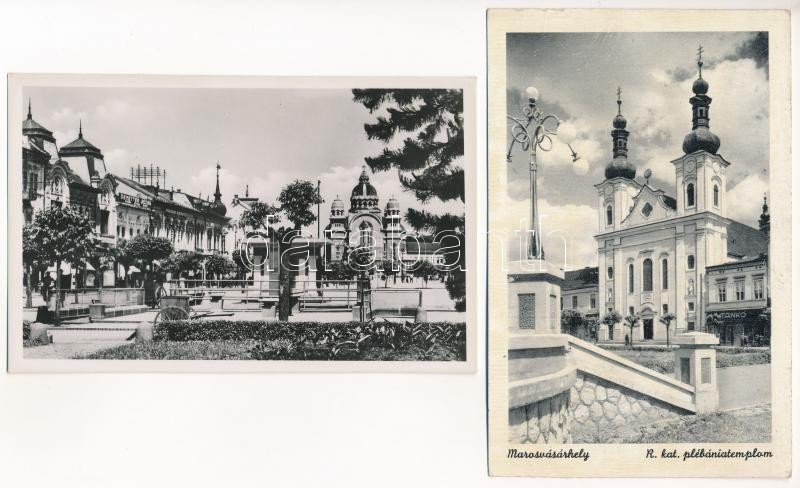 Marosvásárhely, Targu Mures; Római katolikus plébániatemplom, Széchenyi tér - 2 db régi képeslap / church, square - 2 pre-1945 postcards