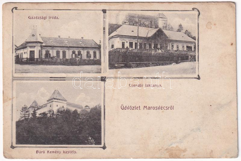 Marosvécs, Wetsch, Brancovenesti; Gazdasági iroda, Csendőrlaktanya tél... https://www.darabanth.com/en/436-Online-auction/436.0/Postcards/Transylvania~2000005/Marosvecs-Wetsch-Brancovenesti-Gazdasagi-iroda-Csendorlaktanya-telen-Baro-Kemeny-kastel~II2834035