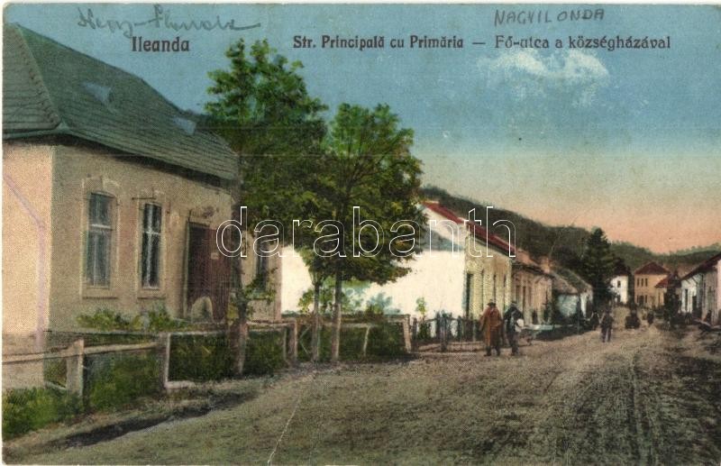 Nagyilonda, Ileanda; Fő utca, községháza / main street with town hall (fa)