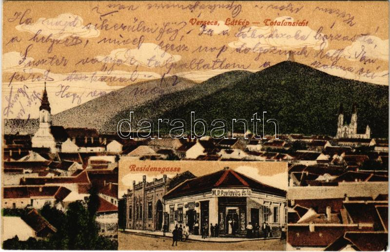 1916 Versec, Werschetz, Vrsac; Residenzgasse / utca, M. P. Pavlovits és fia üzlete / street, shop