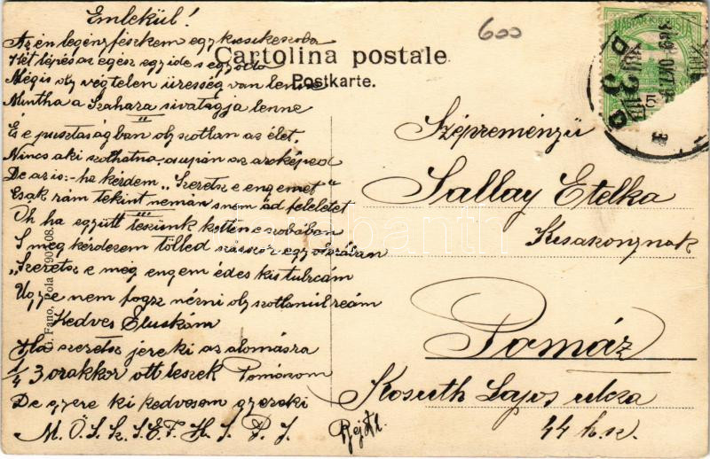 Description: 1909 K.u.K. Kriegsmarine 24 cm Geschütz Achterer Turm / Osztrák-magyar haditengerészet hadihajójának 24 cm-es lövege. Szecessziós lap vasmacskával / Austro-Hungarian Navy cannon. Art Nouveau, G. Fano, Pola 1907-08. (EK)