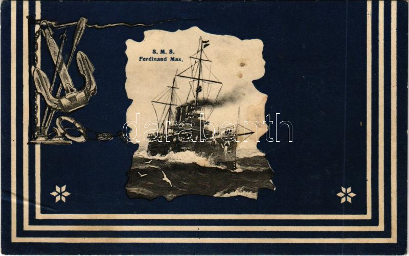 1909 SMS Ferdinand Max Osztrák-magyar haditengerészet csatahajója. Sze... https://www.darabanth.com/en/436-Online-auction/436.0/Postcards/Warships~2000025/1909-SMS-Ferdinand-Max-Osztrak-magyar-haditengereszet-csatahajoja-Szecesszios-kepeslap-vasmacs~II2834430