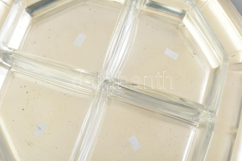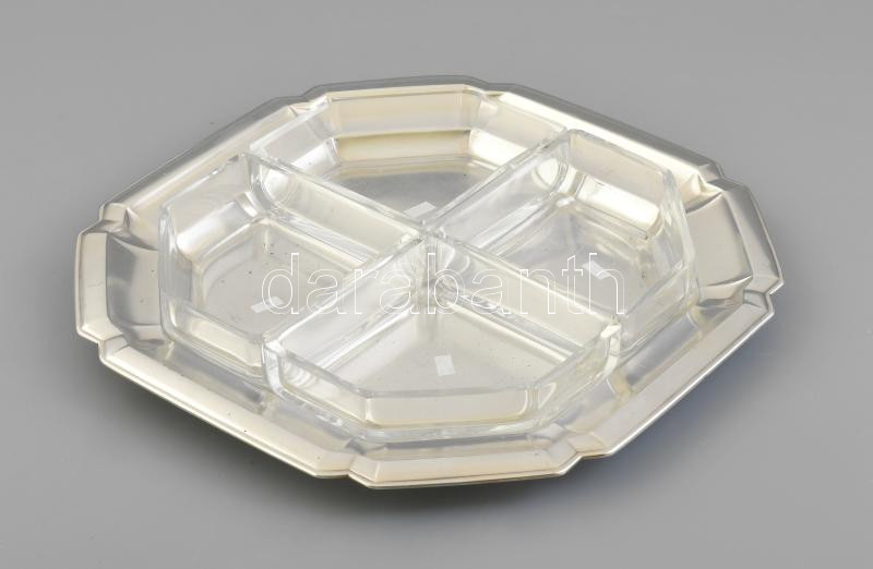 Robe & Berking ezüstözött kínáló, üvegbetétekkel, jelzett, hibátla...