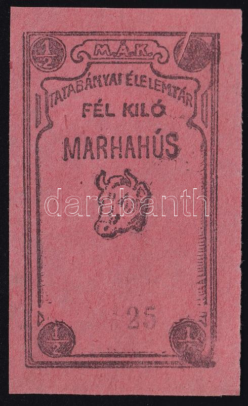 cca 1916 A MÁK tatabányai élelemtára által kiadott fél kiló marhahúsra vonatkozó értékjegy, szép állapotban