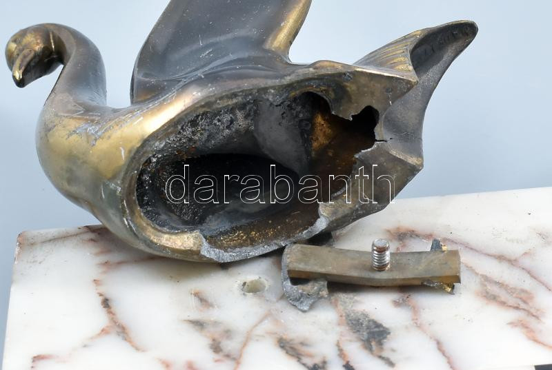 Art deco íróasztali készlet Márvány, réz, hattyú letört, vissza kell ragasztani. 40 cm