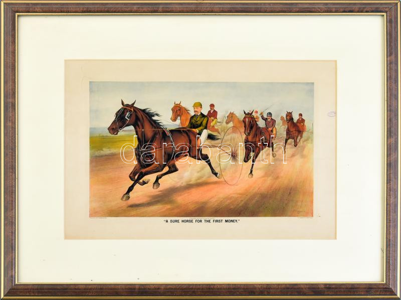 Ügető, nyomat, papír, jelzett a nyomaton, üvegezett fakeretben, 15x23 ...