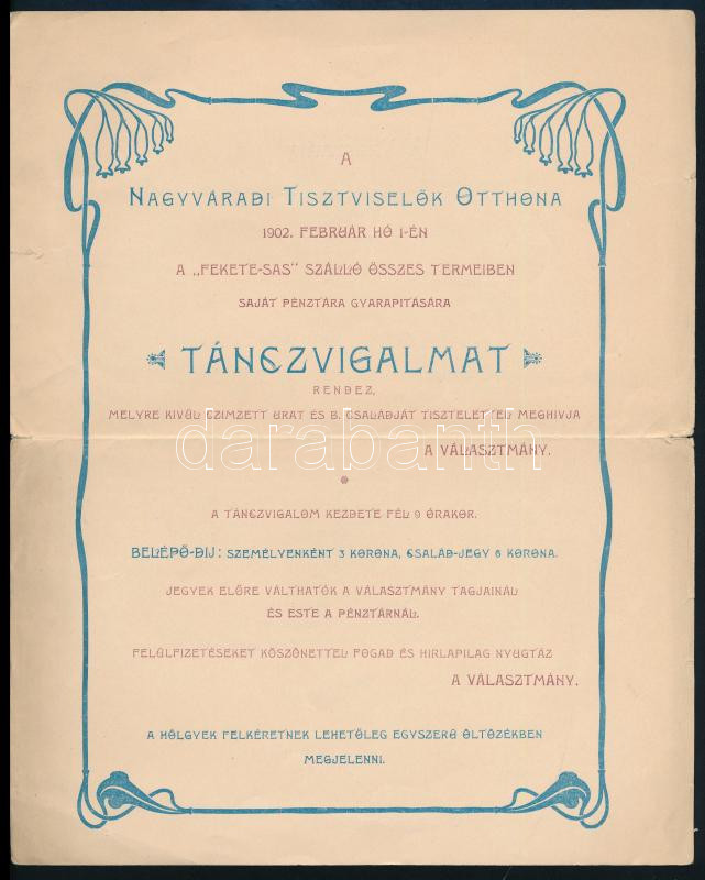 https://www.darabanth.com/en/437-Online-auction/437.0/Art-and-other-collectibles/Printed-Materials~1000009/1902-Nagyvaradi-Tisztviselok-otthona-szecesszios-tancvigalom-meghivo~II2848656