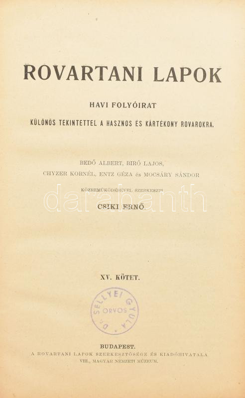 https://www.darabanth.com/en/437-Online-auction/437.0/Art-and-other-collectibles/Printed-Materials~1000009/1908-Rovartani-lapok-szerk-Csiki-Erno-XV-kotet-korabeli-vaknyomasos-egeszvaszon-kotesb~II2849245