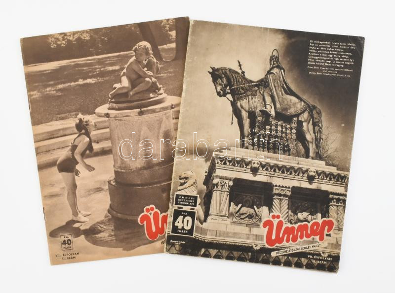 1940-1941 Ünnep c. folyóirat 2 db száma (VII. évf. 16. sz. és VIII. év... https://www.darabanth.com/en/437-Online-auction/437.0/Art-and-other-collectibles/Printed-Materials~1000009/1940-1941-Unnep-c-folyoirat-2-db-szama-VII-evf-16-sz-es-VIII-evf-12-sz-foszerk-~II2845586