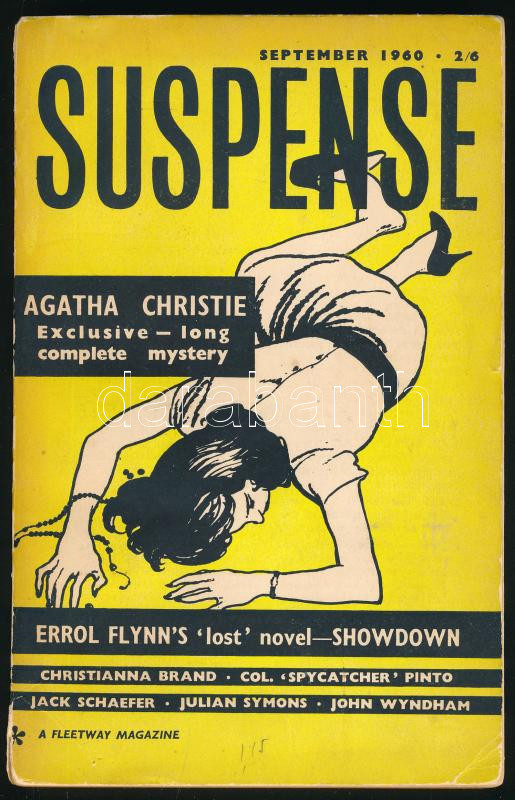 Description: 1960 Suspense Vol. 3. No. 9., September 1960. Contents: The Dream - Exlusive long complete story by Agathe Christie; Showdown by Errol Flynn; etc. 144 p. / Angol nyelvű irodalmi folyóirat, Agatha Christie és mások novelláival, írásaival. Kiadói papírkötés, kissé sérült, foltos borítóval.