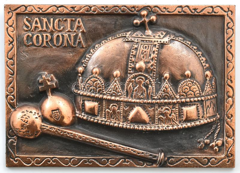 D.B. jelzéssel: A magyar koronázási ékszerek (Sancta Corona), falidísz, bronzírozott fém, 13,5x19 cm