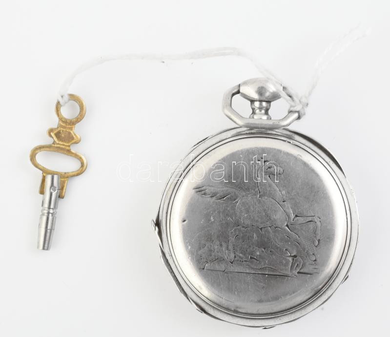 Prinsard a Vals lovas ezüstözött mechanikus zsebóra, kulccsal, működik, d: 43 mm