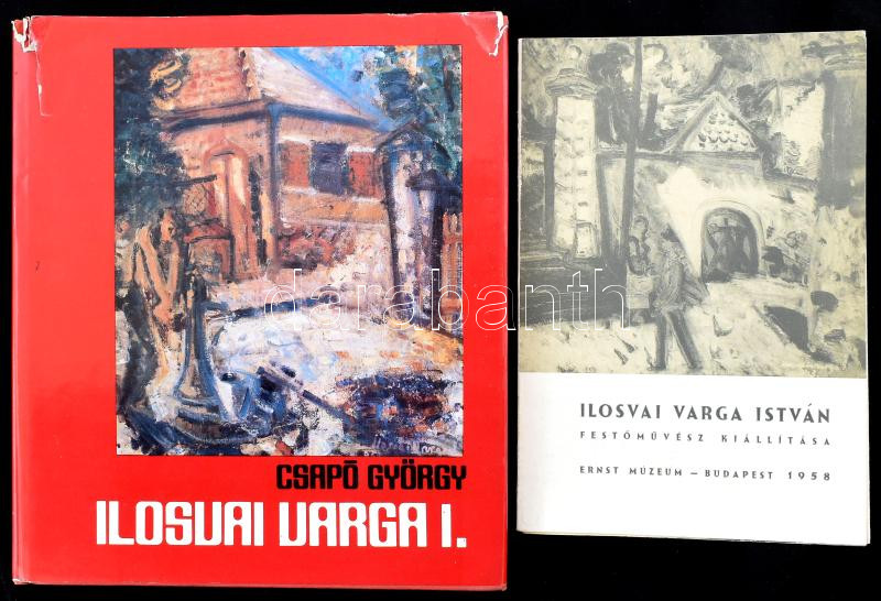 Description: Csapó György: Ilosvai Varga I. Bp., 1981, Képzőművészeti Alap. Gazdag fekete-fehér és színes képanyaggal, Ilosvai Varga István műveinek reprodukcióival illusztrálva. Kiadói egészvászon-kötés, sérült kiadói papír védőborítóban. Megjelent 5000 példányban. + 1958 Ilosvai Varga István festőművész kiállítása, Ernst Múzeum - Budapest, kiállítási prospektus