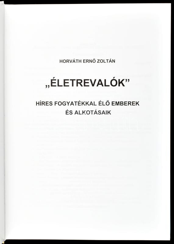 Horváth Ernő Zoltán: ,,Életrevalók." Híres fogyatékkal élő emberek és alkotásaik. [Bp.], 2020., Vivo. Kiadói kartonált papírkötés.