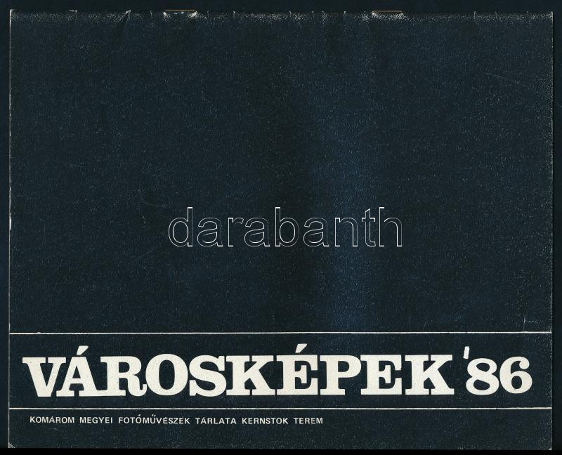 Városképek '86. Komárom megyei fotóművészek tárlata. (Kiállítási katalógus). Tatabánya, 1986, Tatabányai Szénbányák Házi sokszorosító-ny. Fekete-fehér és színes fotókkal. Kiadói tűzött papírkötés.
