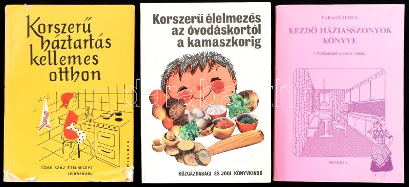 3 db konyha témájú könyv: Faragó Ilona: Kezdő háziasszonyok könyve + K... https://www.darabanth.com/en/437-Online-auction/437.0/Books/Books-Gastronomy-and-Gardening~1000017/3-db-konyha-temaju-konyv-Farago-Ilona-Kezdo-haziasszonyok-konyve-plus-Korszeru-haztartas-~II2844000