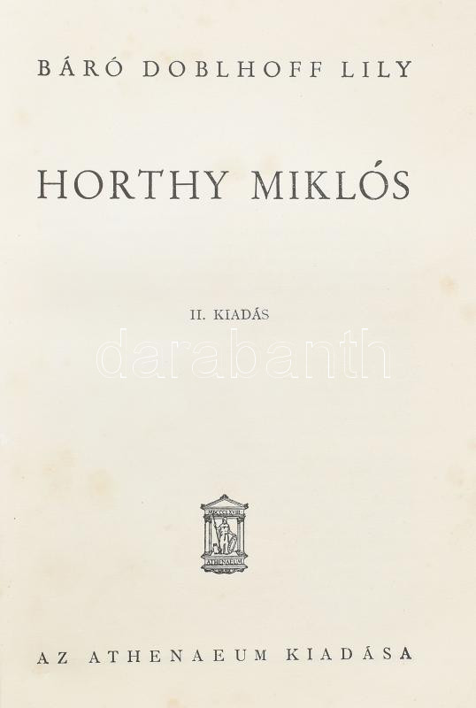 Báró Doblhoff Lily: Horthy Miklós. Bp., é.n., Athenaeum. II. kiadás. A... https://www.darabanth.com/en/437-Online-auction/437.0/Books/Books-History~1000014/Baro-Doblhoff-Lily-Horthy-Miklos-Bp-en-Athenaeum-II-kiadas-A-cimlap-elott-Horthy-Mi~II2841842