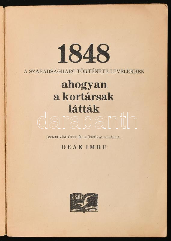 Deák Imre: 1848. A szabadságharc története levelekben, ahogyan a kortá... https://www.darabanth.com/en/437-Online-auction/437.0/Books/Books-History~1000014/Deak-Imre-1848-A-szabadsagharc-tortenete-levelekben-ahogyan-a-kortarsak-lattak-Osszegyu~II2845364