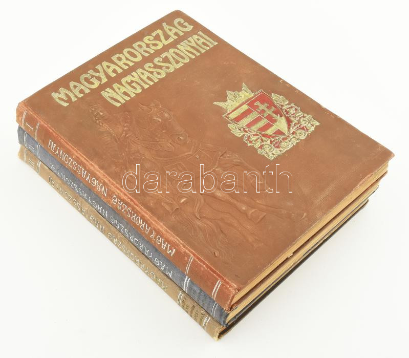 Farkas EmÅ‘d: Magyarország Nagyasszonyai. I-III kötetek. Teljes! Illusztrálta: Nemes Mihály. Bp., (1911), Wodianer F. és Fiai, Szövegközi és egészoldalas, fekete-fehér illusztrációkkal, könyvdÃszekkel. Kiadói aranyozott, dombornyomott egészvászon-kötés, kopásokkal