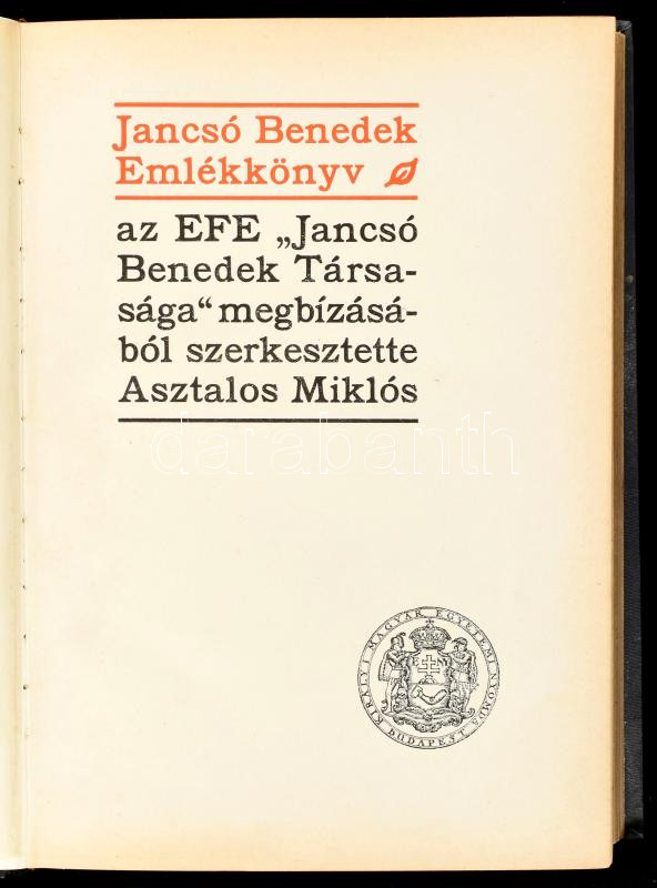 Jancsó Benedek emlékkönyv. Szerk.: Asztalos Miklós. Bp., 1931, Kir. M.... https://www.darabanth.com/en/437-Online-auction/437.0/Books/Books-History~1000014/Jancso-Benedek-emlekkonyv-Szerk-Asztalos-Miklos-Bp-1931-Kir-M-Egyetemi-Nyomda-1-tplus413~II2841151