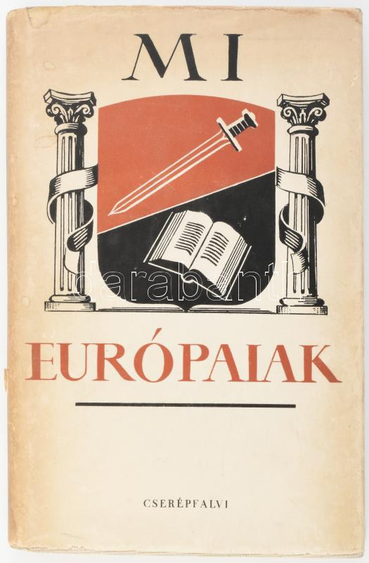 Maritain-Huizinga-Marcel-Belloc-Bernanos-Wust-XII. Pius: Mi európaiak. Összeáll. és fordította: Just Béla. Bp., Cserépfalvi. Kiadói egészvászon kötés, papír védőborítóval, előzéklapon, címlapon szakadásokkal, kopottas állapotban.