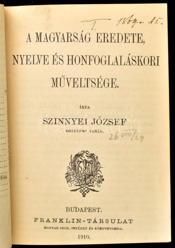 Szinnyei József: A magyarság eredete, nyelve és honfoglaláskori műveltsége.;