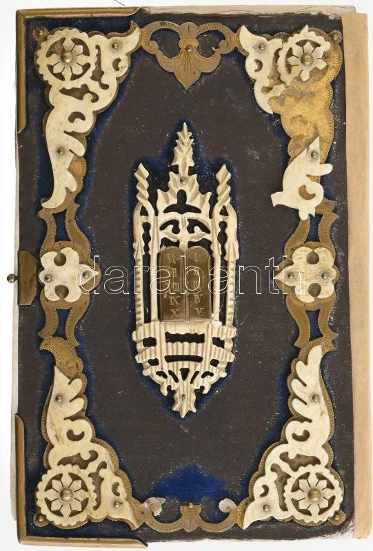 Description: Stern, [Max Emanuel]: Gebete der Israeliten. [Izraelita imakönyv]. Wien, 1876, Josef Schlesinger. Héber és német nyelven. Dekoratív, réz és csont rátétekkel díszített bársonykötésben, kissé viseltes állapotban, helyenként sérült, kijáró lapokkal.