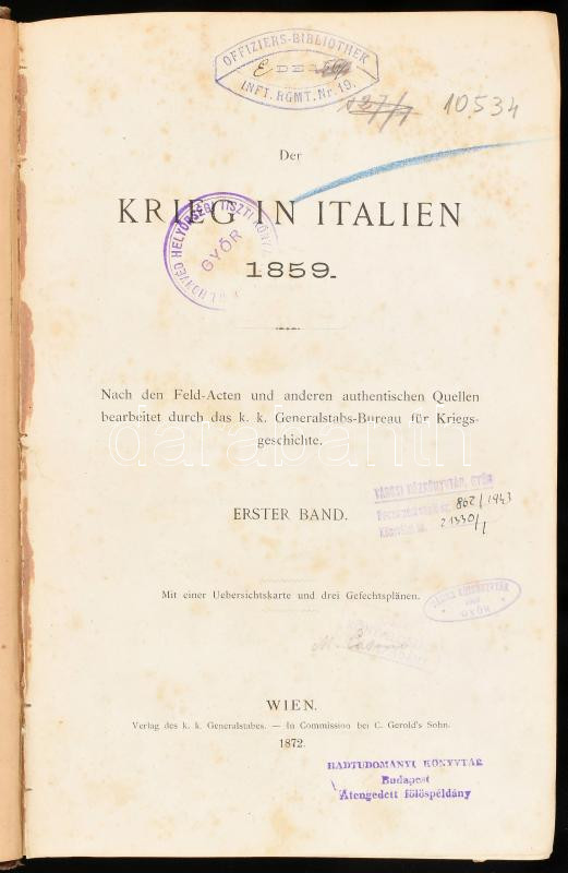 Der Krieg in Italien 1859. Nach den Feld-Acten und anderen authentischen Quellen bearbeitet durch das k. k. Generalstabs-Bureau für Kriegsgeschichte. I-III. kötet.