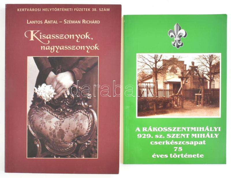 2 db dedikált könyv: Szlavkovszky László: A rákosszentmihályi 929. sz. Szent Mihály cserkészcsapat 75 éves története. (Bp.), 2002, Rákosszentmihályi 929. sz. Szent Mihály Cserkészcsapat. Kiadói papírkötés. + Lantos Antal - Széman Richárd: Kisasszonyok, nagyasszonyok. Kertvárosi Helytörténeti Füzetek 38. sz. Bp., 2015, Corvin Művelődési Ház. Kiadói papírkötés.