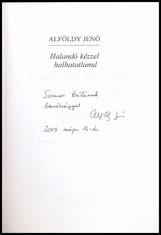 Alföldy Jenő: Halandó kézzel halhatatlanul. Elemzések és tanulmányok I... https://www.darabanth.com/en/437-Online-auction/437.0/Books/Books-Other-rarities~1000030/Alfoldy-Jeno-Halando-kezzel-halhatatlanul-Elemzesek-es-tanulmanyok-Illyes-Gyula-verseirol~II2773075