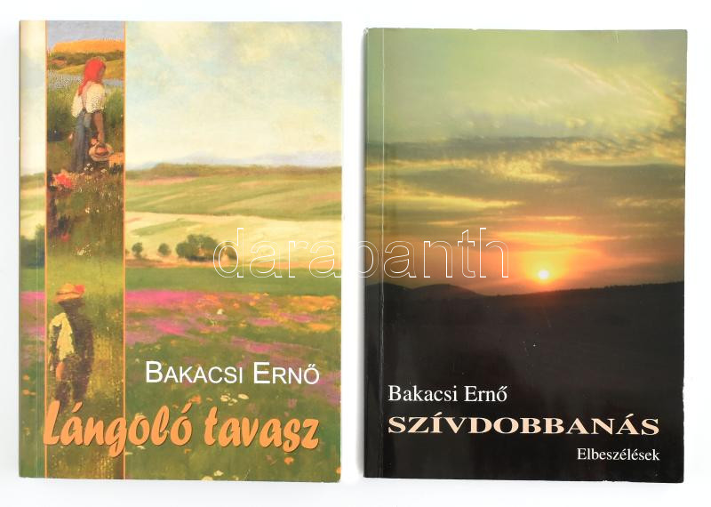 Description: Bakacsi Ernő: Szívdobbanás.+ Lángoló tavasz. A szerző által Somos Béla (1938-1?) író, költő, pedagógus részére DEDIKÁLT példányok. Bp., 2010-2012.,Hungarovox. Kiadói papírkötések.