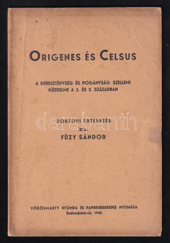 Füzy Sándor: Origenes és Celsus. A kereszténység és pogányság szellemi... https://www.darabanth.com/en/437-Online-auction/437.0/Books/Books-Other-rarities~1000030/Fuzy-Sandor-Origenes-es-Celsus-A-keresztenyseg-es-poganysag-szellemi-kuzdelme-a-2-es-3~II2852095