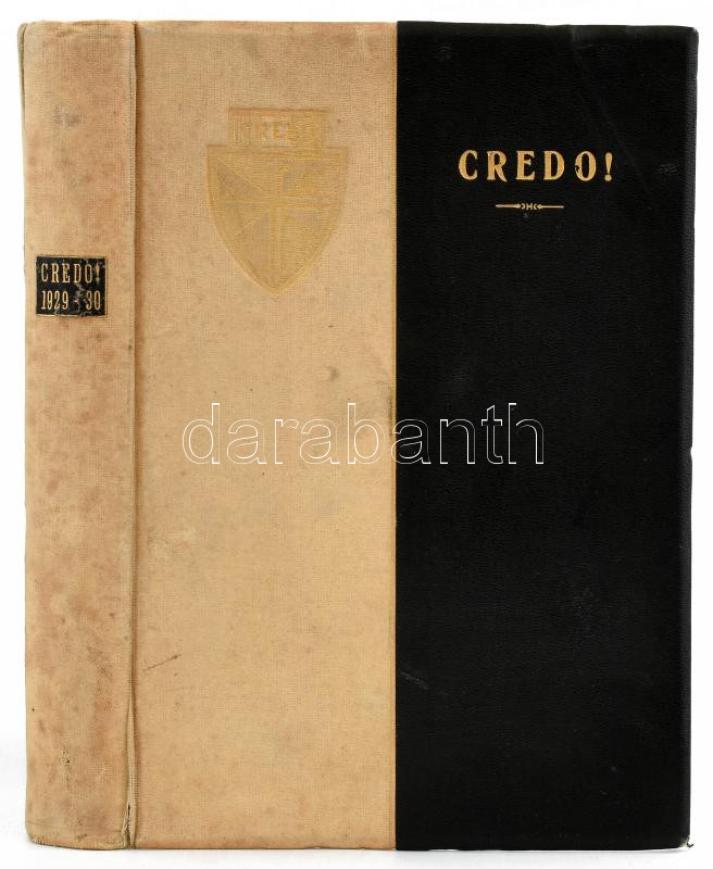 1929-1930 Credo! Folyóirat katolikus férfiak számára - A Credo Férfiegylet hivatalos lapja. VII-VIII. évf. (Két teljes évfolyam egybekötve). Fekete-fehér képekkel, a címlapon Márton Lajos illusztrációjával. Aranyozott félvászon-kötésben, a borítón kis sérüléssel, foltokkal. Az előzéklapon Dr. Horváth Sándor (1884-1956) szerzetes, teológus névbejegyzésével (1942-től a Pázmány Péter Tudományegyetem Hittudományi Karának professzora, 1947/48-ban a kar dékánja volt).